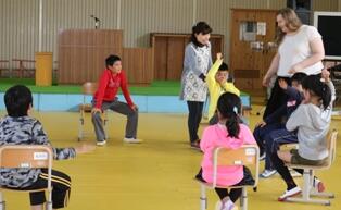 学年一緒に英語を使ったゲームを楽しみました。ALTの先生、1年間お