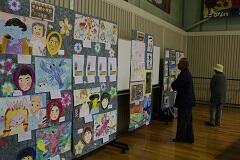 【 子ども達の作品展示 】    【 農産物の展示 】