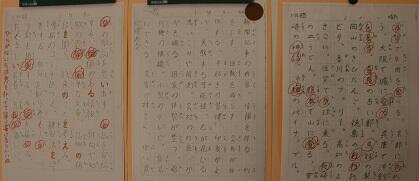 現在、3人の子どもたちの書いたものが掲示されています。