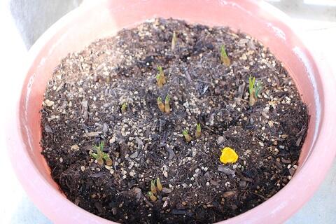 隣を見ると・・・黄色い花が・・・クロッカスだそうです(^^;)