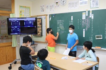ICT支援員の宮崎大学の先生にもお越しいただき、タブレットを使った話し合いの様子を見ていただきました。