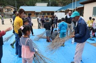 最後に竹箒づくりでした。特に竹箒作りは、尾八重地区の老人クラブの