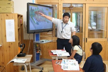 て、自分の考えを説明していました。このように教育機器を効果的に授