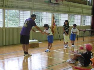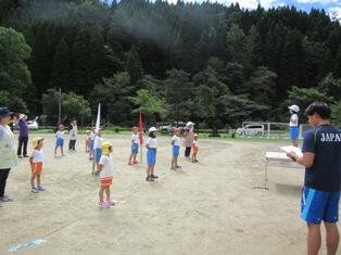 運動会の合同練習の前だったので、保育所生も表彰にお祝いの拍手をしてくれました。、
