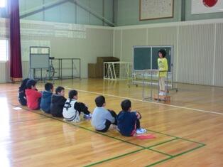 今日は、中学校の音楽の先生を招いての全校音楽の授業がありました。