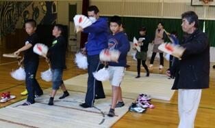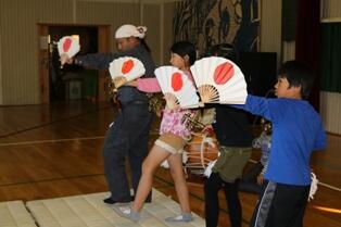 また、この日のクラブの時間に、地元に伝わる神楽の練習を行いま