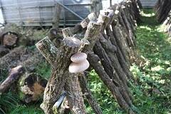 【 広いしいたけ原木置き場 】    【 すくすく育つしいたけ達 】