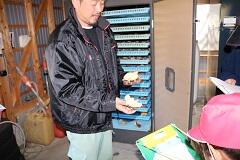 【 乾燥しいたけの違いの説明 】  【 しいたけ乾燥機の中 】