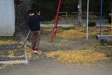 は、落ち葉集めを急ピッチで進めています。子ども達も朝のボラン