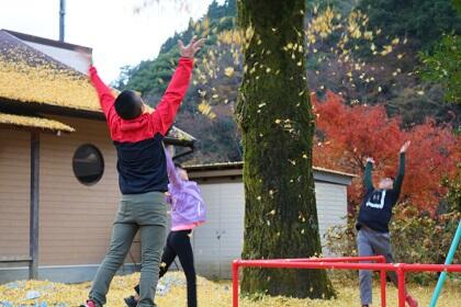 【 落ち葉を投げて喜ぶ子ども達! 】