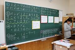 今回の授業は1年生が「ひきざん(2)」、2年生が「かけ算(2)」の