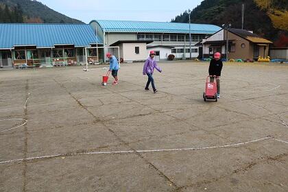 あきらめて、体育館でソフトミニバレーの練習をしました。