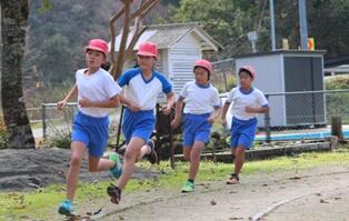 大会は、保育所生が運動場を5周、1・2年生が6周、3・4年生が8周、