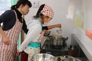 1・2時間目を使って調理実習を行っていました。作ったメニューは、ご