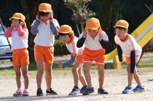 【 ピストル怖い~、耳をふさぐ保育所生 】