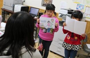 分かりやすいように補助の子が本を見せたりと、工夫がたくさん見られ