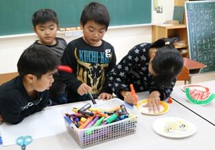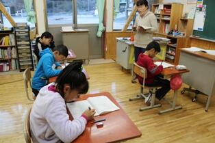 覗いてみると、1・2年生は算数、3・4年生は図工、5・6年生は社会の