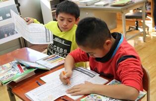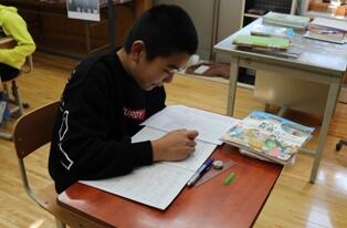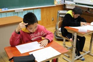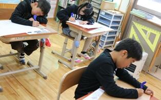 教室では少しレベルの高い読み取りのテストを、3・4年教室では、担任