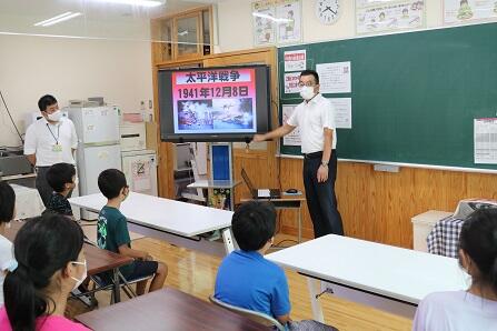 戦争による多くの犠牲者を通して、命の尊さや平和の大切さを校長先生がお話しされました。