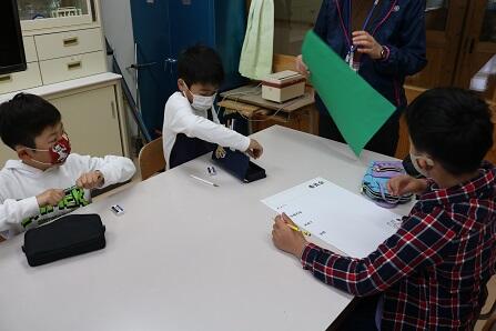5・6年生は複式で、5年生が算数「体積の公式」で、6年生が算数「線対称・点対称」の学習でした。