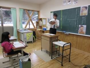 休み時間になると他の学年の児童も様子を見に来ていました。少々恥ずかしがっていましたが、気持ちを込めて、大きな声でセリフが言えるようになりました。