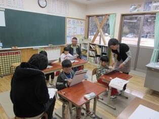 2年生は、教頭先生と「かさこじぞう」の学習をしています。