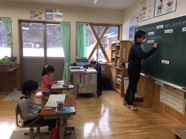 の学年も複式の授業の流れにそって、集中して授業に取り組ん