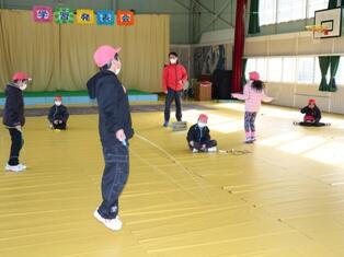 本日の業間の不土野っ子ファイトは、全校でなわとびをしま