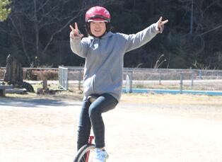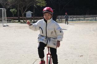 多かったので、子ども達は大喜びで一輪車をこいでいま