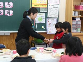 3月1日に、村内の小中学校給食の献立を作られる栄養教諭