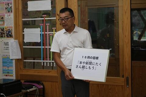 今日の朝の活動は10月の全校朝会でした。今回は校長先生、図