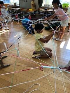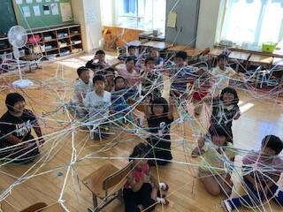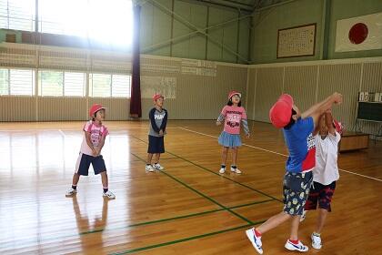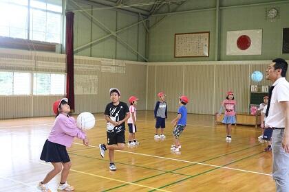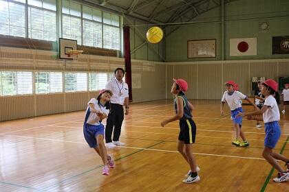 今日の業間の時間は、各学級に分かれてソフトミニバレーをして