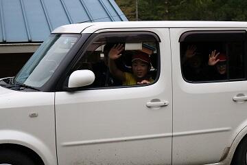 は不土野小に到着します。きっと車の中では大騒ぎで帰ってくるこ
