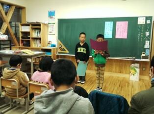 1年生は、昔話の続きを作って朗読しました。