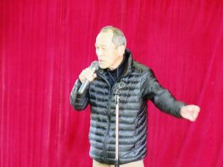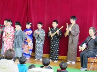 民謡の先生として来ていただいている黒木忠さんには、春祭りの的射で歌われる民謡を披露していただきました。