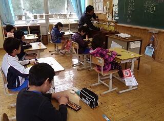 朝の会から5時間目まで、複式ではなく学年ごとの授業を、尾向小学校の子どもたちと一緒に行いました。