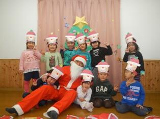 保育所にも校長先生にとっても似ているサンタさんが来ていました。みんなうれしそうです。