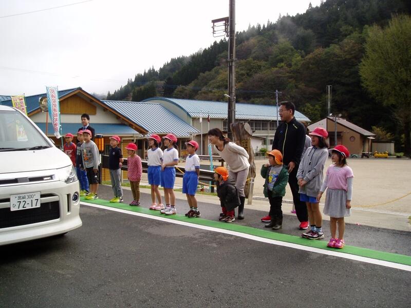いさつ運動」をしてくれました。小学校の先輩達は、保育所の子ども達を前に手本