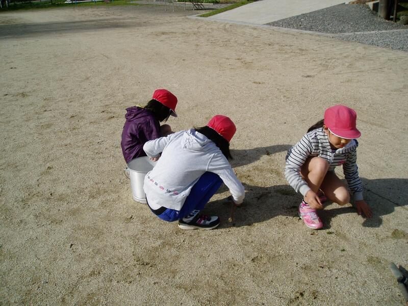 子ども達はボランティア活動に精を出していました。今週のボランティアは、運動場のトラ