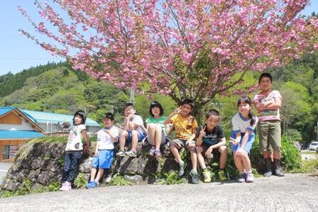 昨日は職員住宅前の満開の桜の下で全員写真を撮影しました。この写真は、毎年この