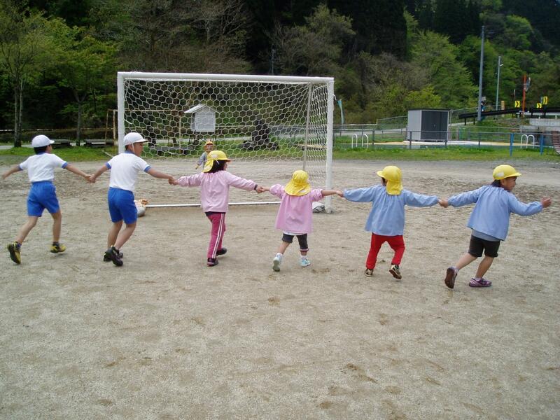 まずは不土野っ子ファイト、今回は保育所生と一緒に全校で「手つなぎ鬼」をしました。