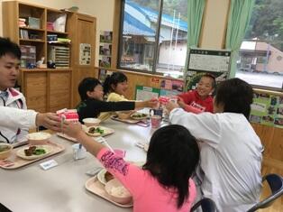 今日は、誕生給食会でした。「ハッピーバースディ」を歌って、牛乳で乾杯してお祝いし