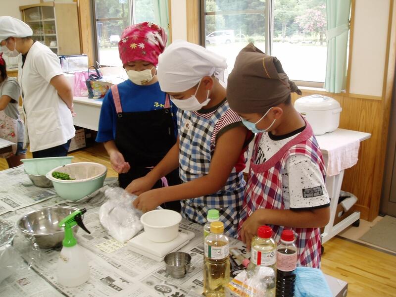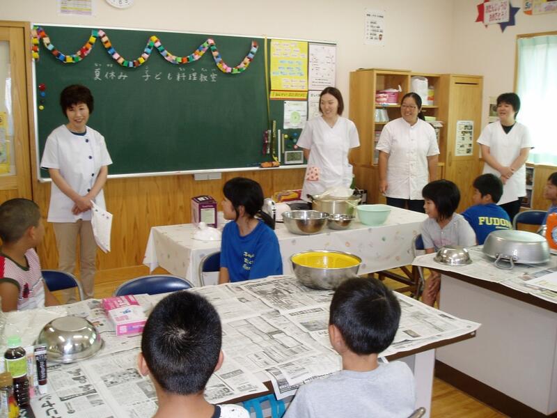 本日子ども料理教室がありました。村内の調理員さん4名が本校