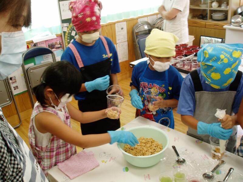 ヨネーズ焼き、ミニパフェを作りを指導してくださいました。子ども達