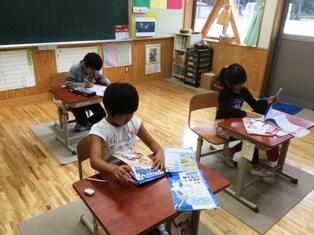 今日は3・4年生の集合学習があります。全校児童10名の不土野