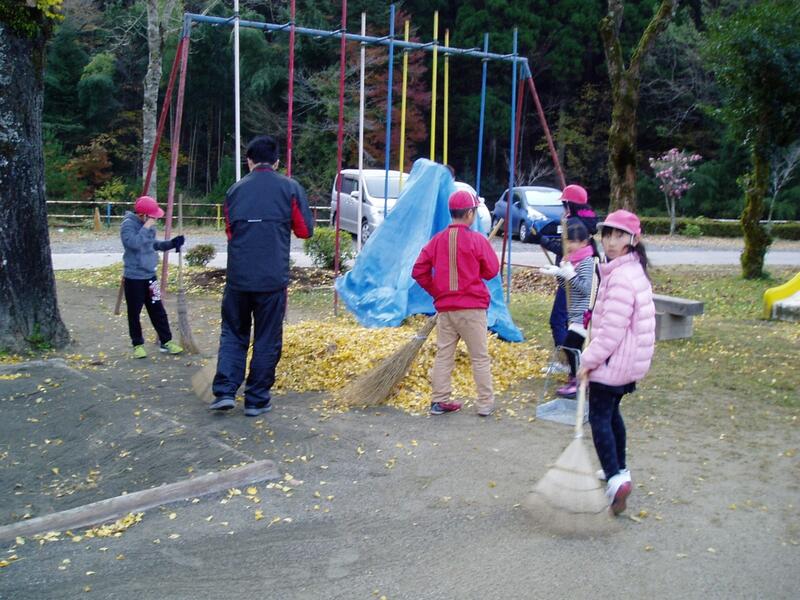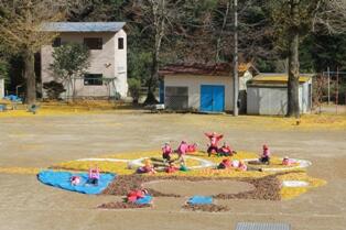 に、小学生・保育所生合同で「落ち葉アート」に挑戦しました。この