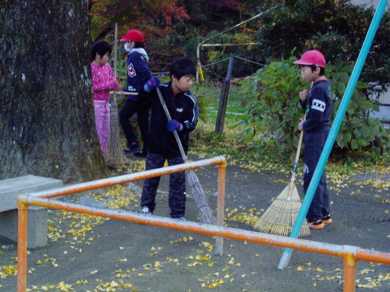 の朝のボランティア活動は、毎日のように落ち葉集めを行っていると