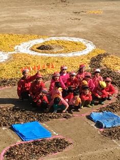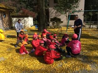 日のために子ども達が毎日集めたイチョウの葉っぱを使って、校