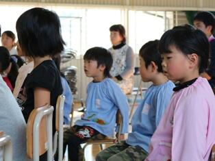 【 真剣に聞き入る小学生 】     【 保育所生も、うっとり 】