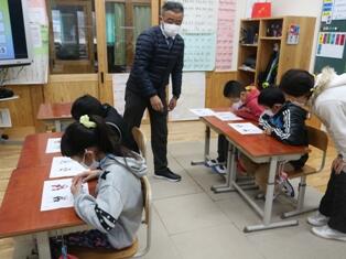 新入学児は、国語の学習を1年生と一緒に受け、説明会の